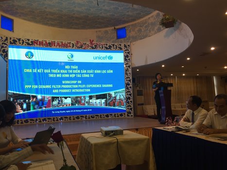 – Chia sẻ hỗ trợ của Unicef trong quá trình thực hiện thí điểm mô hình sản xuất bình lọc gốm tại An Giang